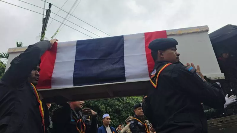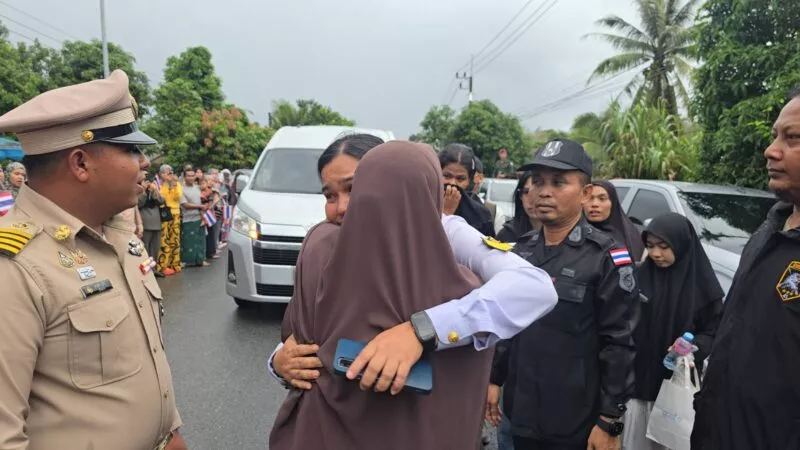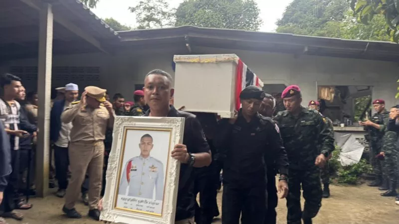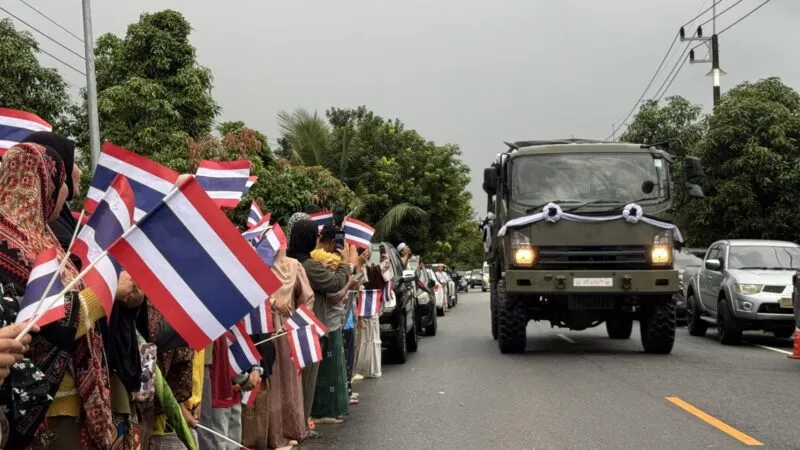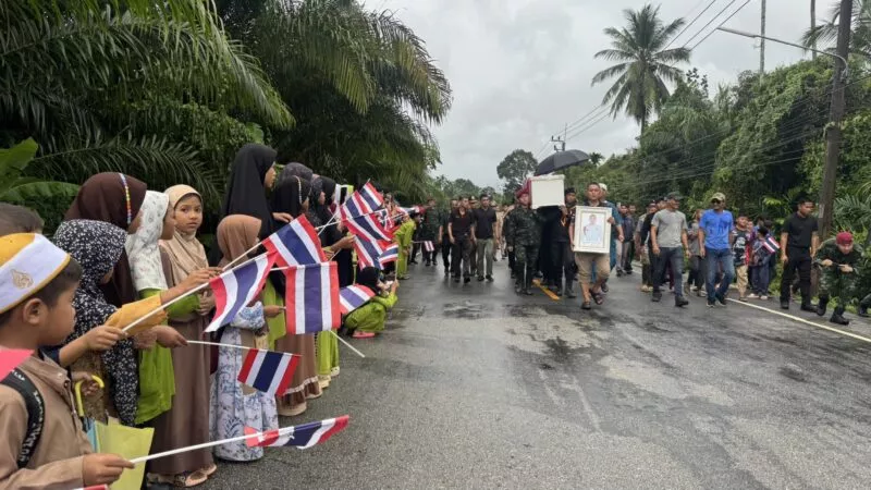 เมื่อเวลา 15.30 น. วันที่ 14 ธ.ค.68 คณะของผู้บังคับบัญชา ภายใต้การนำของ พล.ต.ชาคริต อุจะรัตน รองแม่ทัพภาค 4 พ.อ.ทวีรัตน์ เบญจาธิกุล รอง ผบ.ฉก.นราธิวาส พ.ออรุณ แก้วเศษ รอง ผบ.หน่วยเฉพาะกิจสันติสุข พล.ต.ต.ประยงคต์ โคตรสาขา ผบก.ภ.จว.นราธิวาส และนายพิชิต รุ่งประเสริฐ นายอำเภอจะแนะ ได้ร่วมกับประชาชนที่อาศัยอยู่ในพื้นที่บ้านสุแฆ ม.3 ต.ดุซงญอ อ.จะแนะ ได้ยืน 2 ข้างถนน โบกธงชาติไทย ต้อนรับร่างไร้วิญญาณของ พลอาสาสุตากีม มาเจ๊ะมะ พลยิงอาวุธต่อสู้รถถัง กองพันจู่โจม ซึ่งเสียชีวิตจากการปฏิบัติหน้าที่สู้รบกับกัมพูชา พื้นที่ซำแต บริเวณเนิน 677 ช่องอานม้า อ.น้ำยืน จ.อุบลราชธานี เมื่อช่วงบ่ายของวันที่ 13 ธ..ค.68 ที่ผ่านมา ที่ทางกรมทหารราบที่ 151 ค่ายกัลยาณิวัฒนา ได้นำเลียงศพด้วยรถยนต์บรรทุกหุ้มเกราะ 4 ล้อ FTH มาจากท่าอากาศยานนราธิวาส เพื่อมาประกอบพิธีทางศาสนาที่บ้านเกิดเลขที่ 9/1 ม.3 ต.ดุซงญอ อ.จะแนะ จ.นราธิวาส ซึ่งขบวนของวีระบุรุษมี ส.อ.พาอีซะห์ เจ๊ะแว มารดาเป็นผู้นำขบวน โดยมีเครือญาติถือรูปถ่ายของ พลอาสาสุตากีม