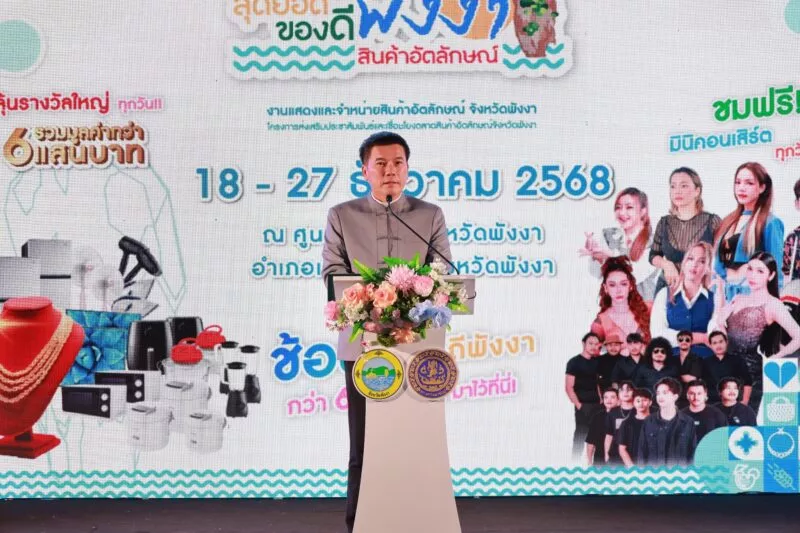 สำนักงานพาณิชย์จังหวัดพังงา ได้จัดงานดังกล่าวขึ้นระหว่างวันที่ 18 – 27 ธันวาคม 2568 บริเวณศูนย์ราชการจังหวัดพังงา ภายในงานมีการจำหน่ายสินค้าอัตลักษณ์ สินค้า GI สินค้าเกษตร สินค้าแปรรูป สินค้าชุมชน อาหารทะเล อาหารทะเลแปรรูป และสินค้าเด่นจากผู้ประกอบการในจังหวัดพังงา ร่วม 60 บูธ ภายในเต็นท์โดมติดแอร์ขนาดใหญ่ สร้างบรรยากาศสะดวกสบายในการซื้อการขายให้กับประชาชนและนักท่องเที่ยว เพื่อมุ่งขยายช่องทางการจำหน่าย เปิดตลาดใหม่ให้กลุ่มผู้ประกอบการในจังหวัดพังงา สร้างรายได้เพิ่ม พร้อมผลักดันสินค้าดี สินค้าเด่น ของจังหวัดพังงาให้เป็นที่รู้จักอย่างกว้างขวาง และเข้าถึงผู้บริโภคได้มากยิ่งขึ้น.