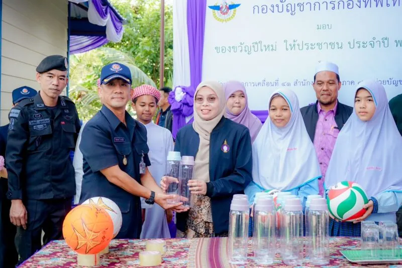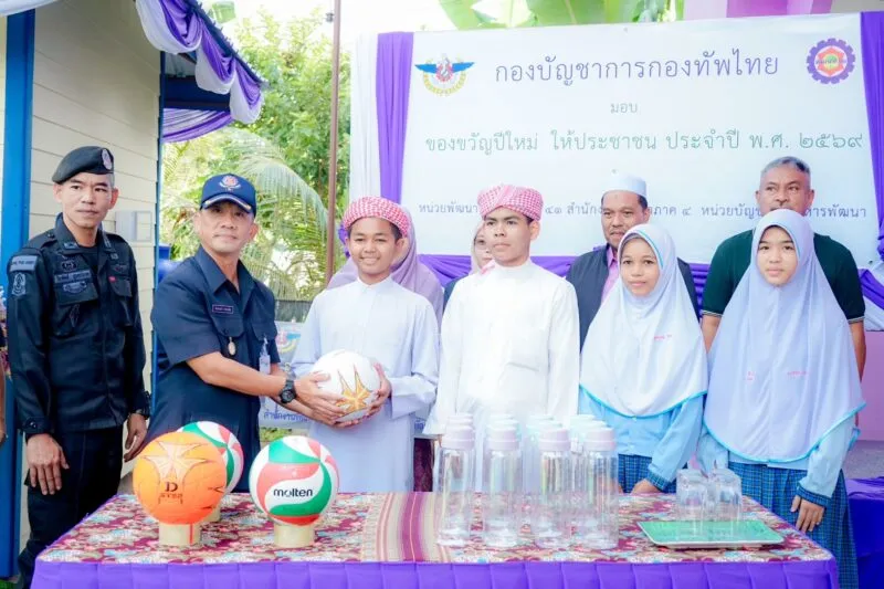เมื่อเวลา 10.00 น. วันนี้ 24 ธันวาคม 2568 ที่โรงเรียนดาราวิทยา ต.ตันหยงมัส อ.ระแงะ จ.นราธิวาส กองบัญชาการกองทัพไทย โดยหน่วยบัญชาการทหารพัฒนา ได้จัดพิธีส่งมอบ “โครงการอาคารบริการน้ำดื่มระบบ RO” และอุปกรณ์กีฬา เพื่อเป็นของขวัญปีใหม่และยกระดับคุณภาพชีวิตให้กับนักเรียน ครู และประชาชนในพื้นที่ โดยพิธีดังกล่าวได้รับเกียรติจาก พันเอก เธียรทรรศน์ ภาม่วงเลี่ยม ผู้บังคับหน่วยพัฒนาการ เคลื่อนที่ 41 (นพค.41) สำนักงานพัฒนาภาค 4 หน่วยบัญชาการทหารพัฒนา เป็นประธานในพิธี โดยมี พ.ท.ไธพัตย์ สุนทรวิภาต รองผู้บังคับการหน่วยเฉพาะกิจ กรมทหารพรานที่ 45, น.ส.นาวาล วาเต๊ะ ผู้รับใบอนุญาตโรงเรียนดาราวิทยา พร้อมด้วยคณะครู บุคลากรทางการศึกษา และนักเรียนเข้าร่วมอย่างพร้อมเพรียง