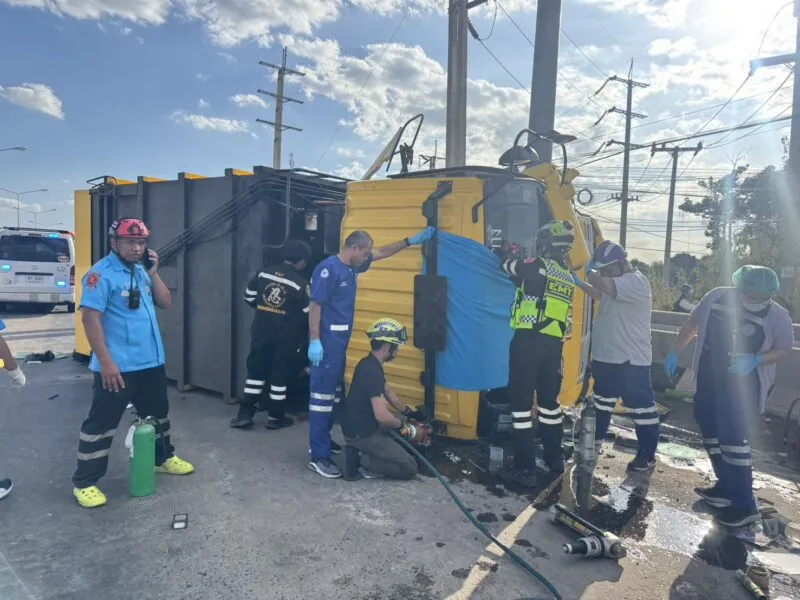 เจ้าหน้าที่กู้ภัย เล่าว่า คนขับถามตอบรู้เรื่อง มีสติ แต่ติดในรถเนื่องจากกระจกทับอยู่ ส่วนหลับในหรือไม่ไม่ทราบ เจ้าหน้าที่จึงได้ใช้เครื่องตัดถ่างช่วยเหลือออกมา