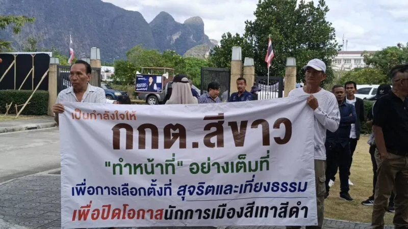 และอีกประเด็นหนึ่งที่หน้าสนใจ เมื่อนายกฤษ ศรีฟ้า อดีตสมาชิกสภาผู้แทนราษฎรจังหวัดพังงา อดีตสมาชิกสภาองค์การบริหารส่วนจังหวัดพังงา อดีตประธานหอการค้าจังหวัดพังงา อดีตกรรมการบริหารพรรคไทยรักไทยได้นำป้ายผ้ารณรงค์มีขอความ