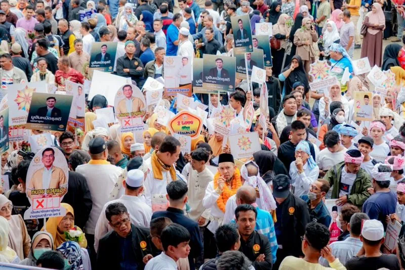 นราธิวาส – สมัคร ส.ส.วันแรกที่นราฯคึกคัก ทวีย่องเงียบให้กำลังลูกพรรค ส่วนกองเชียร์กว่า 1 หมื่นแห่ให้กำลังใจพรรคการเมืองที่ชื่นชอบ
