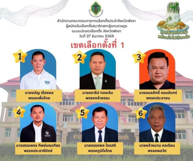 รายชื่อผู้สมัครรับเลือกตั้ง สส. จังหวัดพังงา 4 วัน
