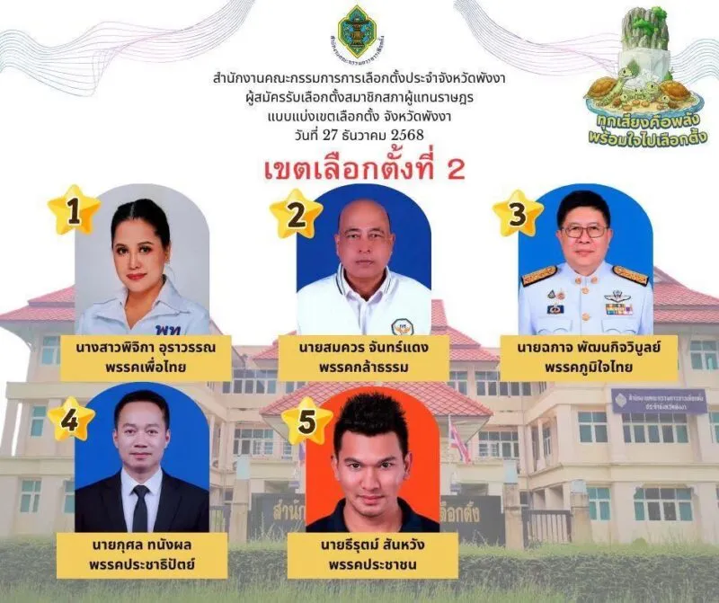 พังงา – เปิดรายชื่อผู้สมัคร ส.ส.พังงา 2 เขตเลือกตั้ง