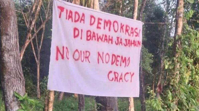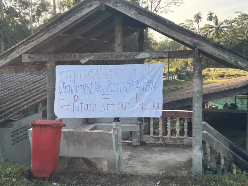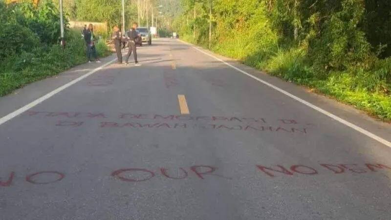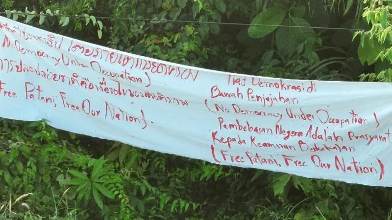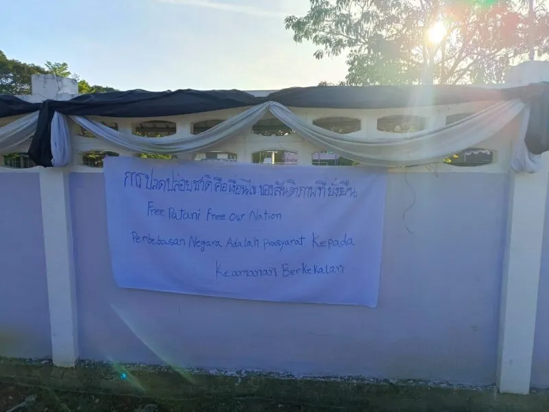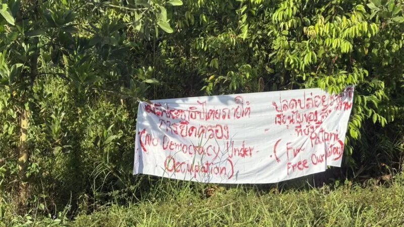 เมื่อเวลา 06.00 น. วันนี้ 6 ก.พ.69 พล.ต.ต.ประยงค์ โคตรสาขา ผบก.ภ.จว.นราธิวาส ได้รับรายงานจากผู้กำกับการสถานีตำรวจภูธรในพื้นที่ 9 อำเภอ จำนวน 17 จุด 24 ผืน คือ เมืองนราธิวาส 1 จุด 1 ผืน ยี่งอ 2 จุด 2 ผืน สุคิริน 1 จุด 1 ผืน เจาะไอร้อง 1 จด 2 ผืน ระแงะ 1 จุด 4 ผืน ศรีสาคร 2 จุด 4 ผืน ตากใบ 2 จุด 3 ผืน สุไหงปาดี 3 จุด 3 ผืนและจะแนะ 4 จุด 4 ผืน มีกลุ่มคนร้ายได้มีการนัดแนะกระจายกำลังกัน แขวนป้ายผ้าพื้นสีขาว เขียนข้อความอักษรภาษาไทยและอังกฤษ ด้วยสีแดงและสีน้ำเงิน มีข้อความว่า ไม่มีประชาธิปไตยภายใต้การยึดครอง (No Democracy Under Occupation) ปลดปล่อยชาติคือเงื่อนไขของสันติภาพที่ยังยืน (free patani free our nation) และป้ายข้อความการปลดปล่อยชาติ คือ เงื่อนไขของสันติภาพที่ยั่งยืน ( free patani free our nation ) โดยคนร้ายได้แยกย้ายนำไปแขวนไว้ตามสถานที่ต่าง ๆ อาทิ พงหญ้ารกทึบริมทาง กิ่งไม้ริมทาง และบริเวณบนสายไฟฟ้าที่ลากผ่านถนน รวมทั้งใช้สีสเปร์สีแดงพ่นผิวถนน