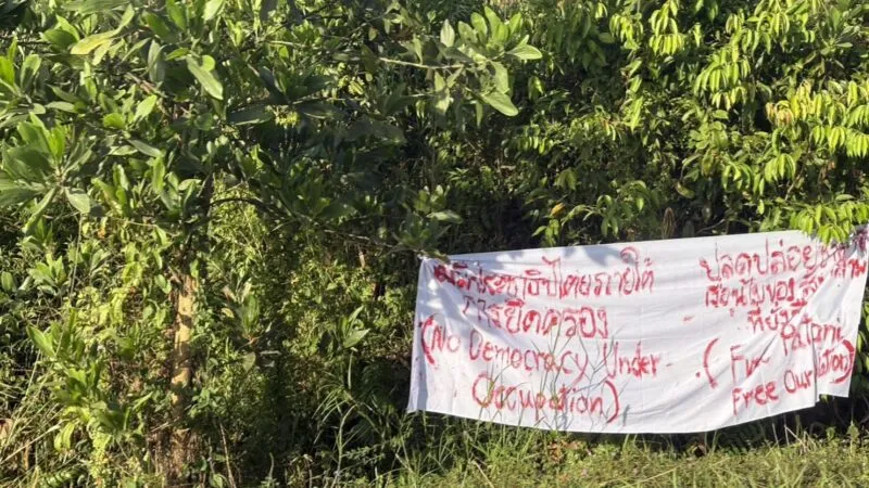 นราธิวาส – โจรใต้แขวนป้ายผ้าป่วนโค้งสุดท้ายเลือกตั้ง สส.นราธิวาส 9 อำเภอ 17 จุด 24 ผืน