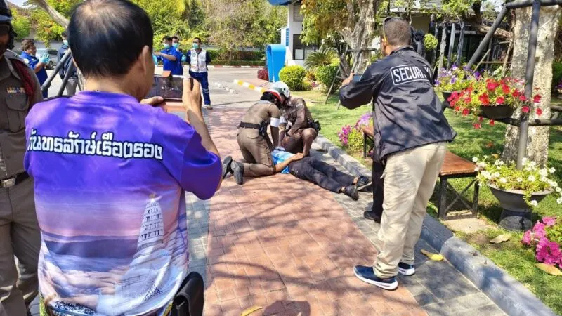 ศรีสะเกษ – ตำรวจศรีสะเกษช่วยเหลือคนเป็นลมหน้าร้านกาแฟนำส่งโรงพยาบาลโดยฉับพลัน
