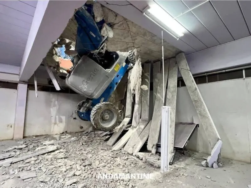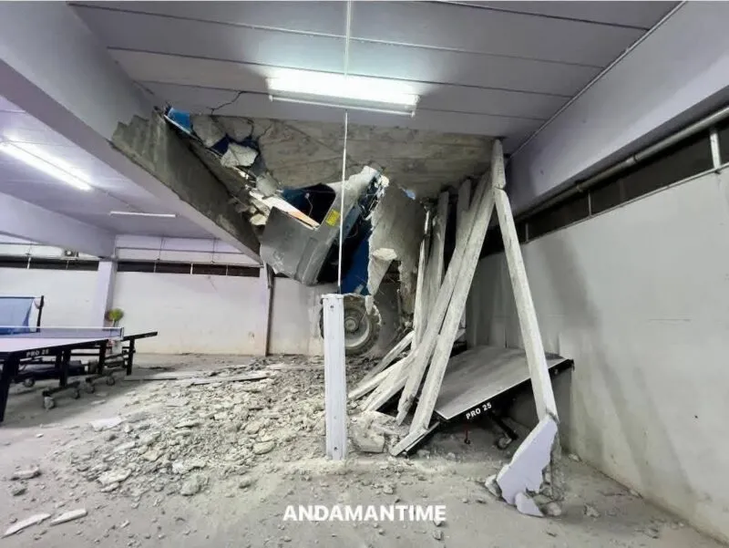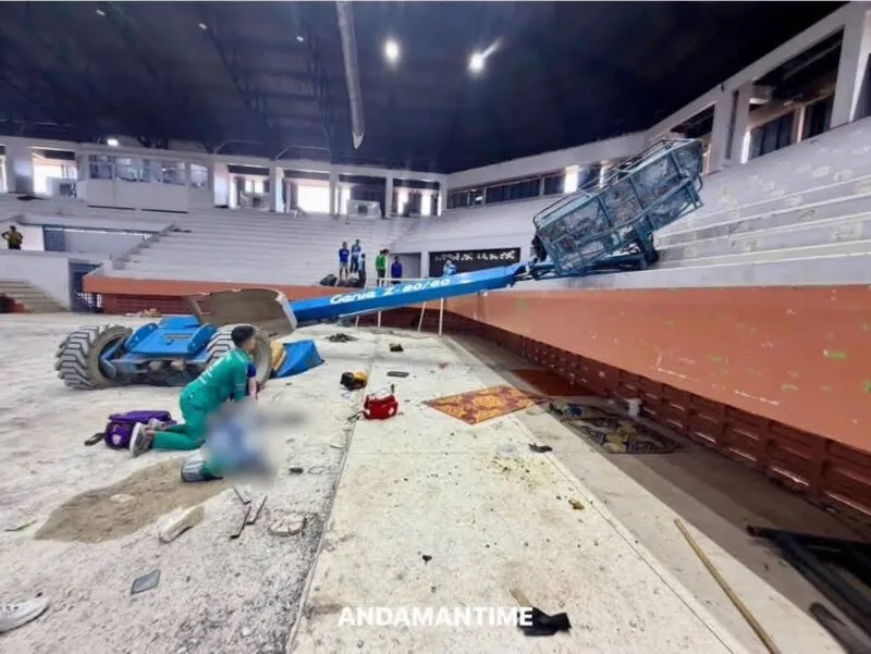 ตรัง – สุดสลด..พื้นโรงยิมเทศบาลนครตรังถล่ม รถบูมลิฟท์ร่วงดับ 2 ศพ คู่สามี–ภรรยาคนงานระบบไฟ–แอร์