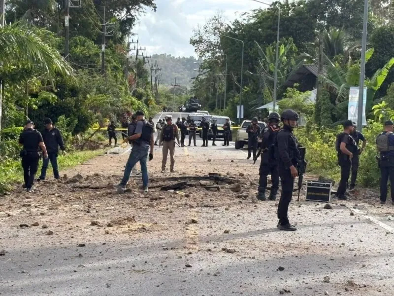 เมื่อเวลา 15.20 น. วันที่ 11 ก.พ.69 พ.ต.อ.ศุภชัย ศุภกิจจารักษ์ ผกก.สภ.รือเสาะ จ.นราธิวาส รับแจ้งมีเหตุคนร้ายลอบวางระเบิด ที่บริเวณท่อลอดกลางถนนในหมู่บ้านกาโดะ ม.4 ต.รือเสาะออก ทำให้มีผู้ได้รับบาดเจ็บ 3 ราย และรถยนต์ได้รับความสียหาย 1 คัน จึงขอสนับสนุนชุดเก็บกู้และทำลายวัตถุระเบิดอโณทัย และชุดสุนัขสงครามมาตรวจสอบที่เกิดเหตุ รวมทั้งหน้าที่ที่เกี่ยวข้อง