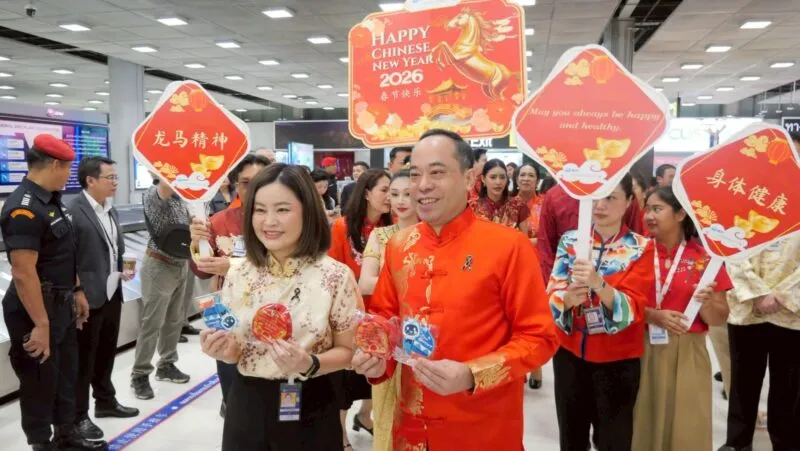 สมุทรปราการ – ท่าอากาศยานสุวรรณภูมิ ต้อนรับตรุษจีน 2569 จัดการแสดงมิตรภาพไทย – จีน มอบของที่ระลึก ส่งต่อคำอวยพรต้อนรับปีใหม่จีนอย่างอบอุ่น