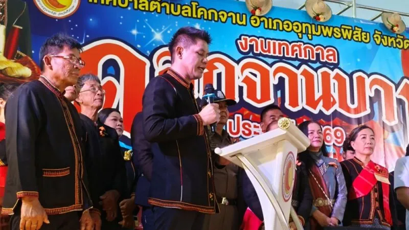 เมื่อวันที่ 18 กุมภาพันธ์ 2569 ที่ลานอเนกประสงค์เทศบาลตำบลโคกจาน อ.อุทุมพรพิสัย จ.ศรีสะเกษ นายสุกิจ เหลืองสกุลไทย รองผู้ว่าราชการจังหวัดศรีสะเกษ เป็นประธานลั่นฆ้องเปิดงานเทศกาลดอกจานบาน ครั้งที่ 19 และโครงการตลาดนัดท้องถิ่นสีเขียว โดยมีนายพศิน ทาสิริ นายอำเภออุทุมพรพิสัย และนายนิรุตย์ เกษกุล นายกเทศมนตรีตำบลโคกจาน นำหัวหน้าส่วนราชการอำเภออุทุมพรพิสัย สมาชิกสภาเทศบาลตำบลโคกจาน กำนัน ผู้ใหญ่บ้าน และพี่น้องประชาชนในพื้นที่เทศบาลตำบลโคกจาน เข้าร่วมในพิธีเปิดงานเทศกาลดอกจานบานในครั้งนี้เป็นจำนวนมาก