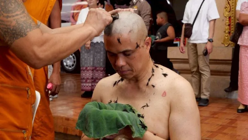 พิธีปลงผมนาคในช่วงเวลา 09.00 น มี นายขจิตเวช แก้วน้อย นายอำเภอบางพลี, นายชำนาญ ชาญไชย ผอ.สำนักงานพระพุทธศาสนาจังหวัดสมุทรปราการ, นางอารีรัตน์ สุนทรเสนาะ วัฒนธรรมจังหวัดสมุทรปราการ, พ.ต.อ.ไพโรจน์ เพ็ชรพลอย ผกก สภ.บางพลี ข้าราชการ พ่อค้าประชาชน ชาวบางพลี เข้าร่วมในพิธีเป็นจำนวนมาก