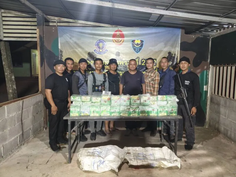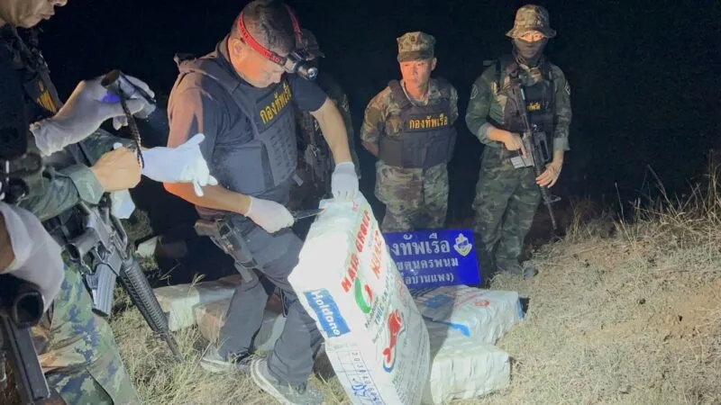 ส่วนที่ริมแม่น้ำโขงทหารพรานเข้าเคลียร์พื้นที่ พบกระสอบป่านสีขาวจำนวน 2 กระสอบ ภายในบรรจุยาไอซ์แพคอยู่ในถุงชาสีทองกระสอบละ 30 ถุงๆละประมาณ 1 กิโลกรัมรวม 60 กิโลกรัม จึงได้ดำเนินการขนย้ายมายัง บก.ร้อย.ฉก.ทพ.2101 บ้านปากห้วยม่วง ต.นาเข เพื่อทำการตรวจนับอย่างละเอียดอีกครั้ง