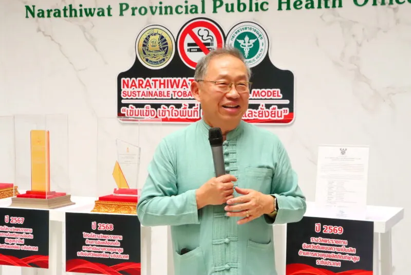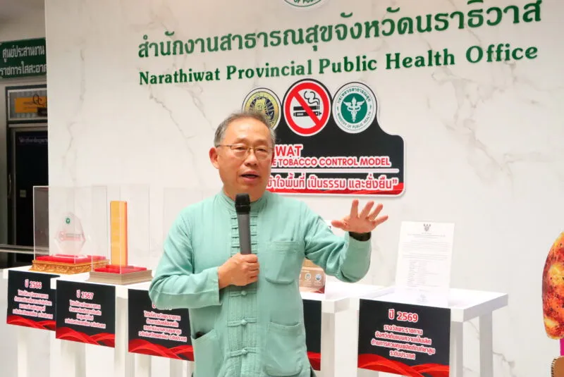 นราธิวาสไม่หยุดพัฒนา! สสส. ยกทัพคณะศึกษาดูงานเยี่ยมเสริมพลังกลไกควบคุมบุหรี่-เหล้าในพื้นที่จังหวัดชายแดนใต้ ด้าน สสจ.นราธิวาส เปิดตัวเลขคัดกรองกลุ่มเสี่ยง พร้อมโชว์ความสำเร็จการใช้กลยุทธ์ “5G หรือ 6ดี” ผสานหัวใจคนทำงานภายใต้บริบทพหุวัฒนธรรม เตรียมยกระดับเป็น “ศูนย์เรียนรู้ความเป็นเลิศ” หลังกวาดรางวัลระดับประเทศต่อเนื่อง 4 ปี