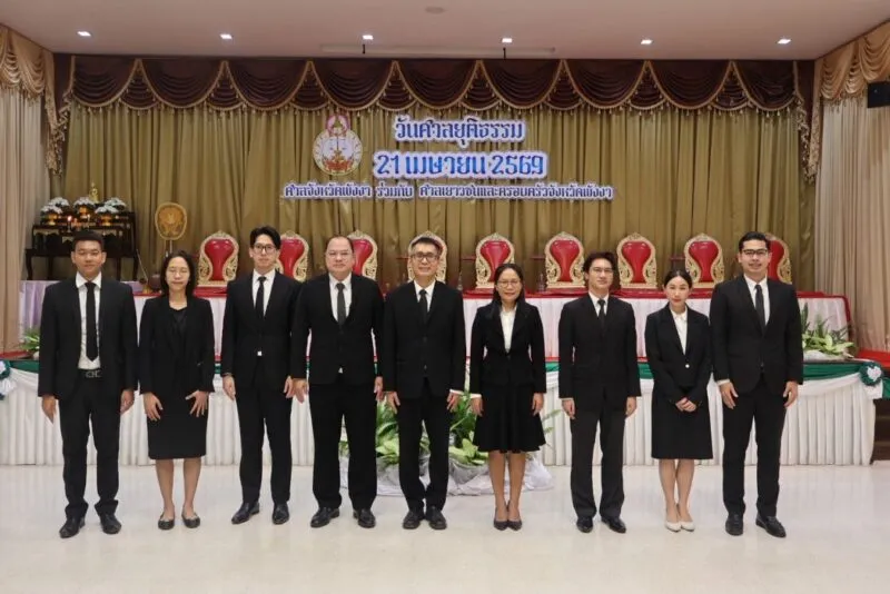 วันนี้ 21 เมษายน 2569 เวลา 09.30 น. นายเมธา จันทร์ชื่น ผู้พิพากษาหัวหน้าศาลเยาวชนและครอบครัวจังหวัดชัยนาท ช่วยทำงานชั่วคราวในตำแหน่ง ผู้พิพากษาหัวหน้าศาลจังหวัดพังงา เป็นประธานในพิธีสงฆ์เนื่องใน“วันศาลยุติธรรม ประจำปี พ.ศ.2569” ในโอกาสวันครบรอบวันสถาปนาศาลยุติธรรม ในปี พ.ศ. 2569 ซึ่งเป็นวันครบรอบ 144 ปี ศาลจังหวัดพังงาร่วมกับศาลเยาวชนและครอบครัวจังหวัดพังงา จัดขึ้นเพื่อเป็นการน้อมรำลึกถึงพระมหากรุณาธิคุณและพระราชประสงค์แห่งพระบาทสมเด็จพระจุลจอมเกล้าเจ้าอยู่หัว ที่มีต่อวงการศาลยุติธรรม โดยมีนางสาวสุวรรณี ปาลบุตร ผู้พิพากษาหัวหน้าคณะชั้นต้นในศาลจังหวัดยะลา ช่วยทำงานในตำแหน่งผู้พิพากษาหัวหน้าศาลเยาวชนและครอบครัวจังหวัดพังงา พร้อมด้วยข้าราชการฝ่ายตุลาการศาลยุติธรรม ผู้พิพากษาสมทบ ผู้ประนีประนอม และบุคลากรของทั้งสองศาลเข้าร่วมพิธี