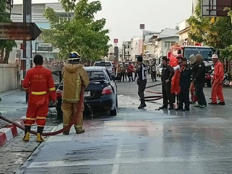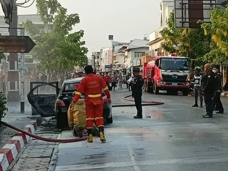 มุกดาหาร – เกิดเหตุเพลิงลุกไหม้รถเก๋งวอดทั้งคัน หวิดดับยกครัวอดีตข้าราชการครู ส่วนเจ้าหน้าที่ตำรวจเร่งตรวจสอบหาสาเหตุ